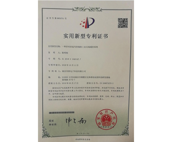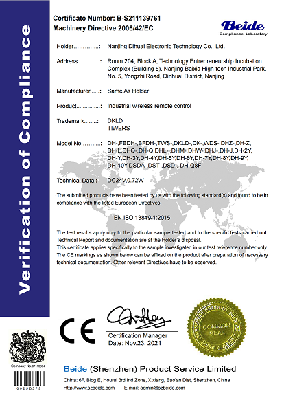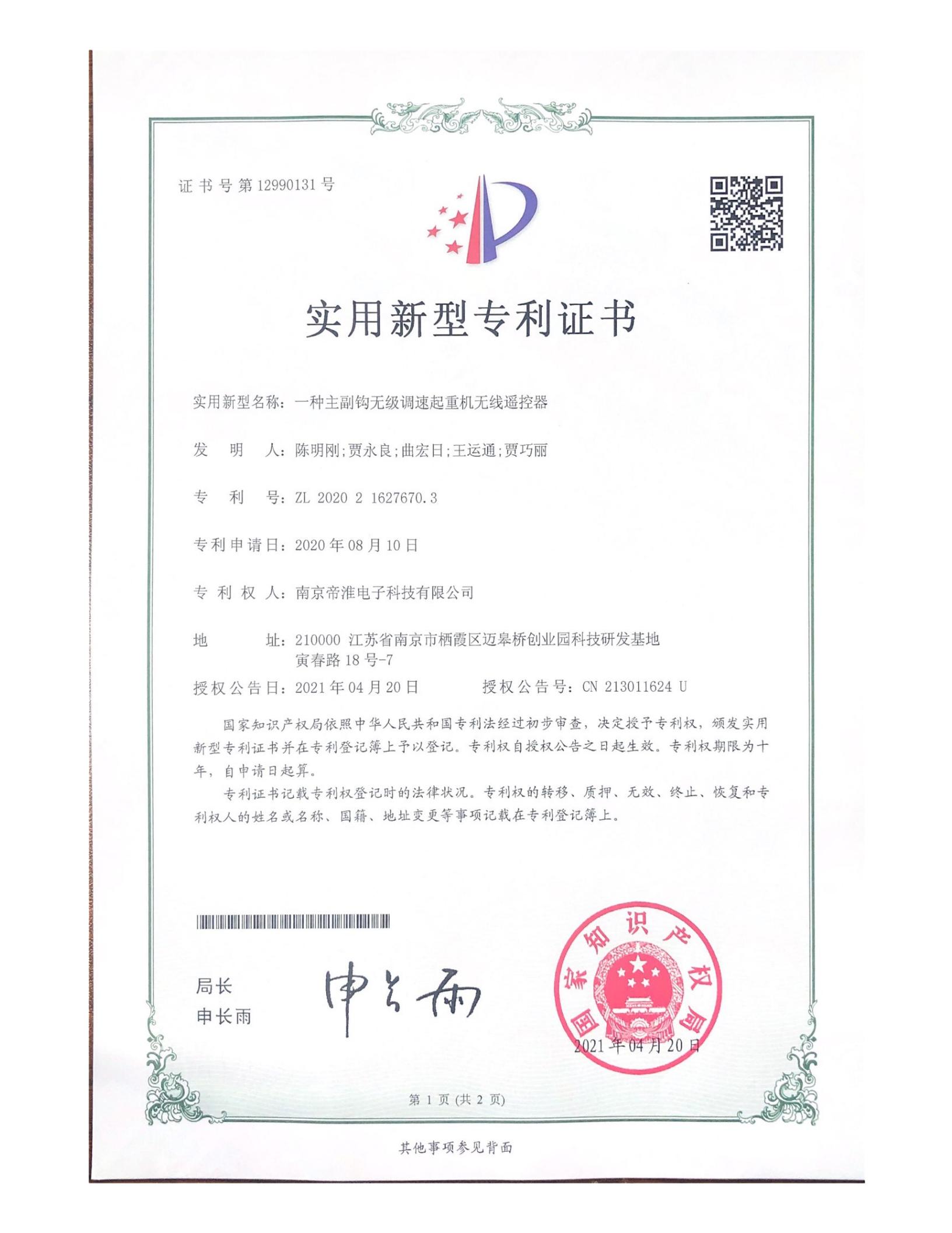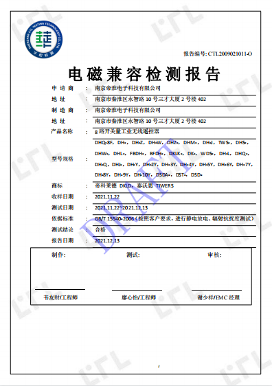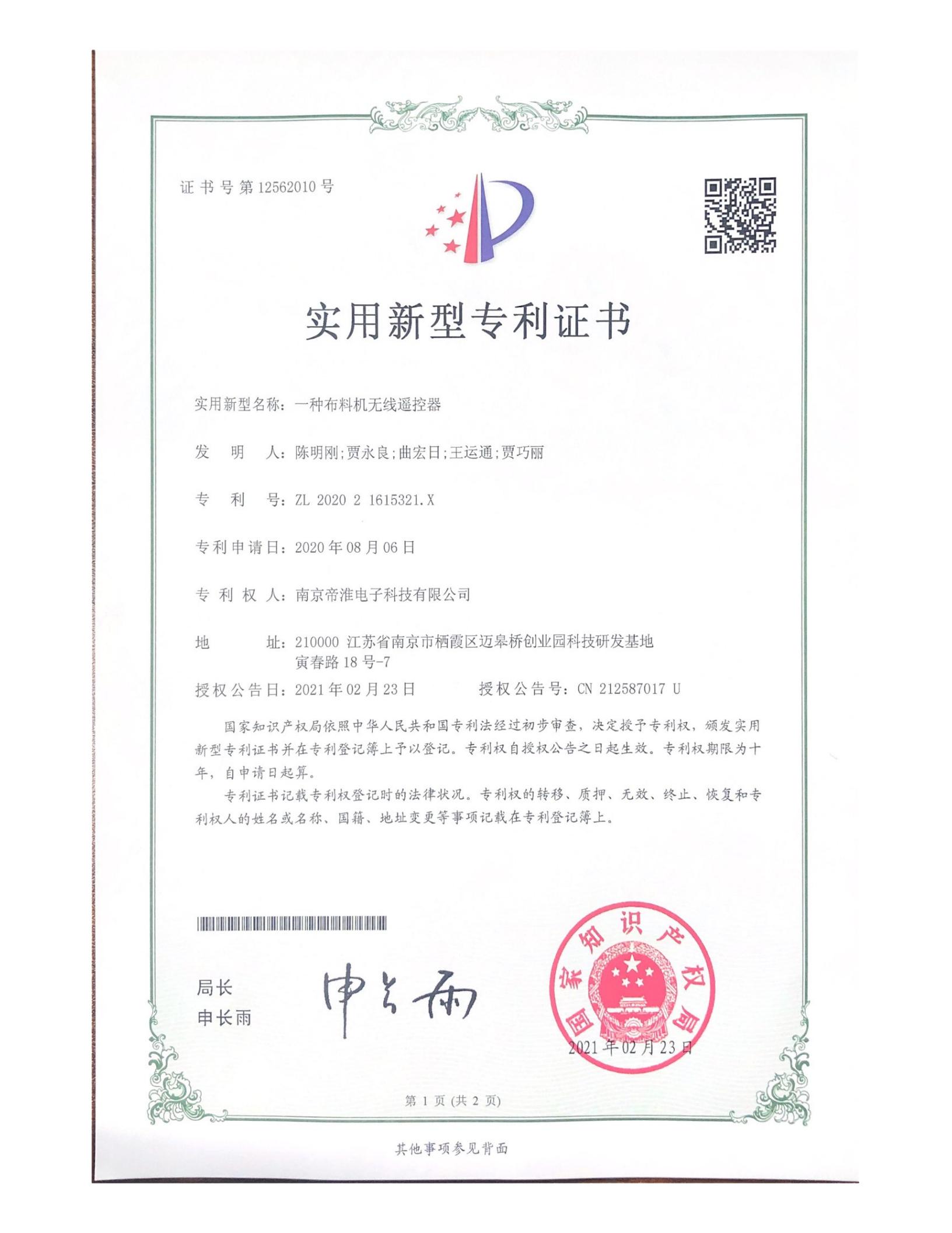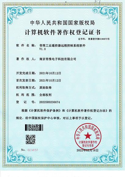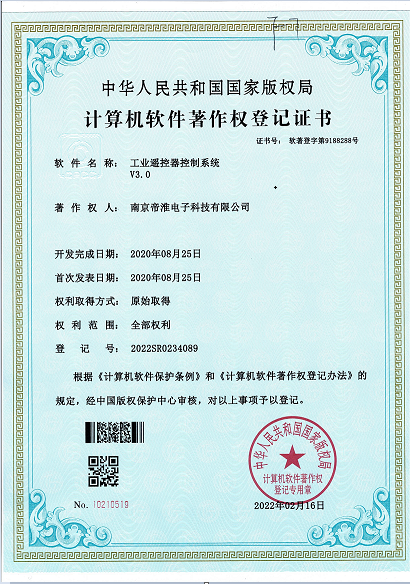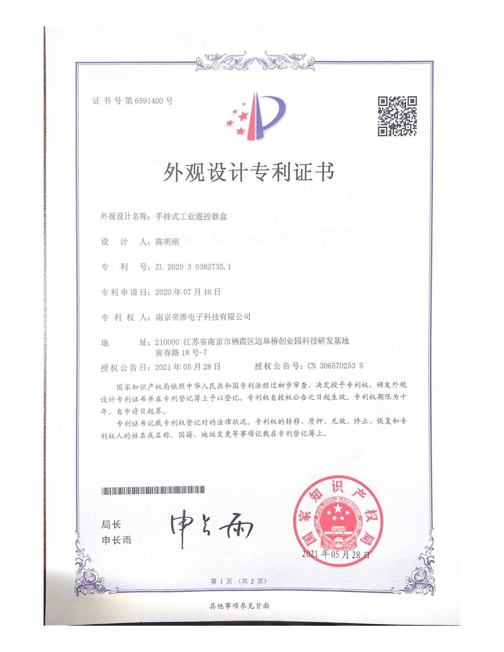 南京帝淮电子科技有限公司,国内工业??仄餍幸盗炀笠?,自主研发、定制、非标设计各类工业级无线遥控器、工业级有线控制器、智能化自主算法逻辑的本地控制器等系列产品。已经申请及正在申请的技术专利、外观专利有近三十项左右,并通过了CE欧盟认证、国家级试验检验报告、EMC电磁兼容认证等。