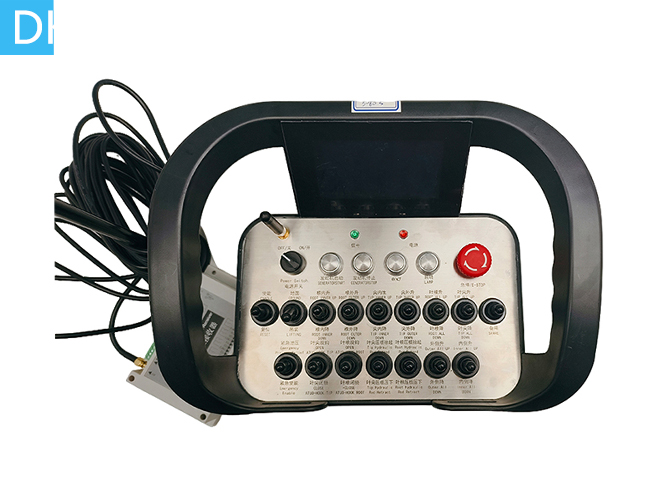 • 3个双轴摇杆+8个按键+1个两档旋转开关+1个5档旋转开关7寸触摸屏平板型工业无线??仄?/div>
